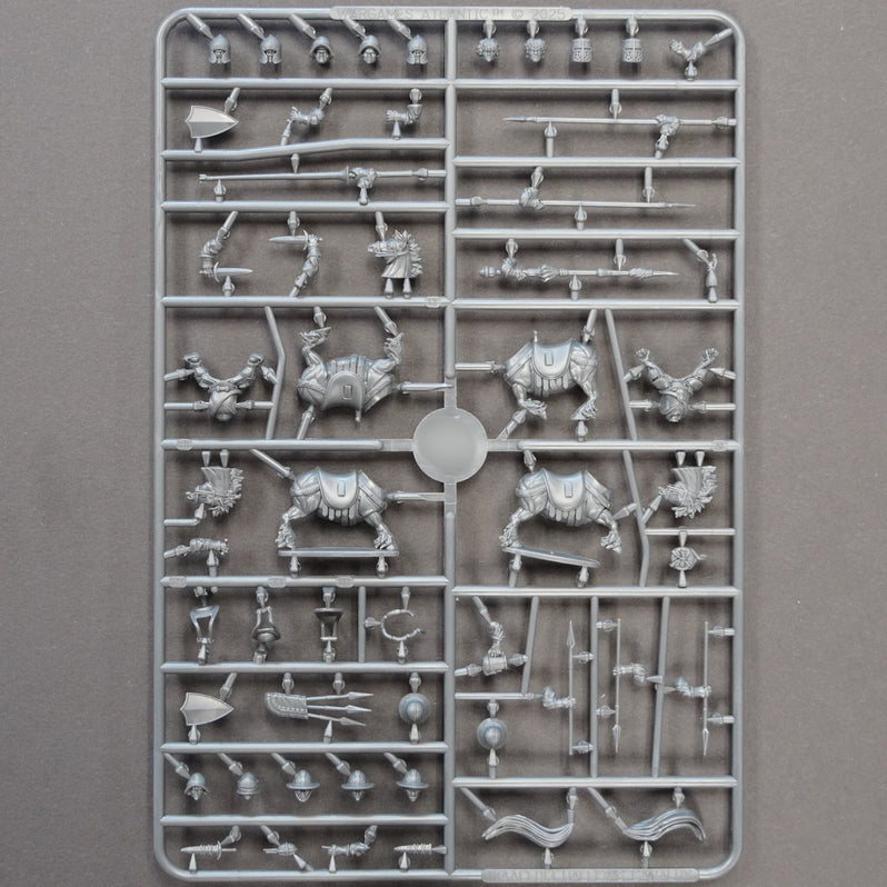 This hard plastic box set allows you to build up to 10 cavalry models equipped with sword, lance, javelin, and even jousting lances along with numerous accessories and five types of heads (80 in total!) This set is fully compatible with the previously released Halfling Militia set which will allow you to create mounted bowmen and more!