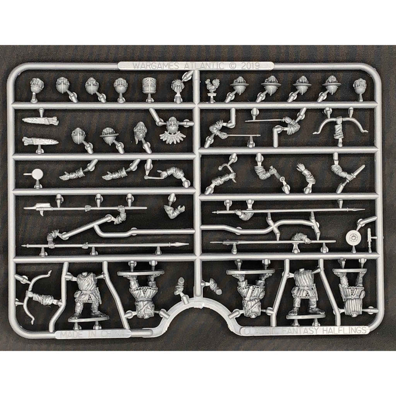 This hard plastic box set allows you to build 40 Halfling Militiamen equipped with bow, sling, halberd, or pike and with options for full command.