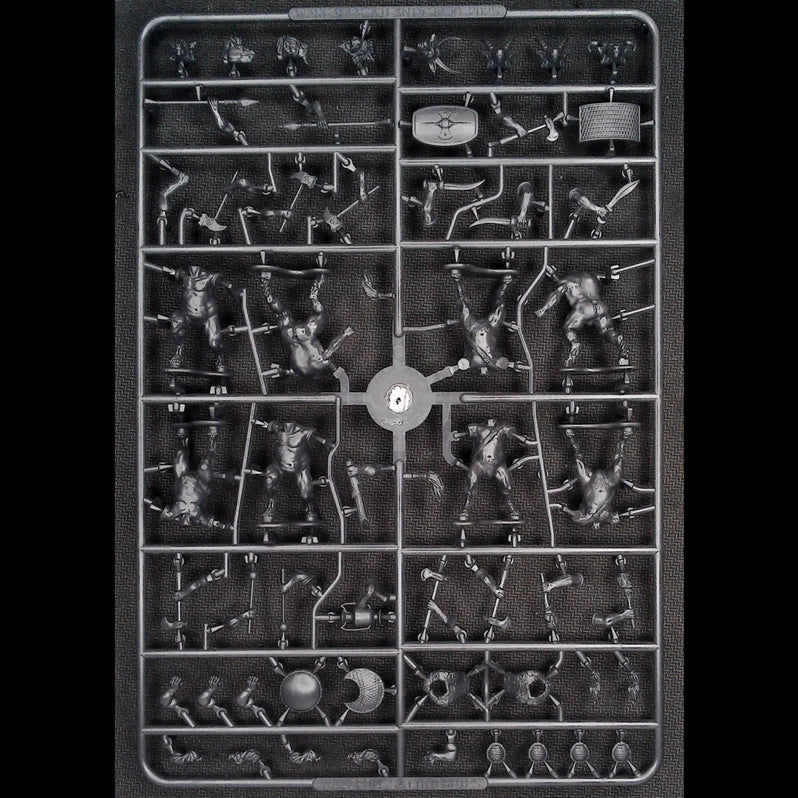 This hard plastic box set allows you to build up to 24 35mm tall Satyr Brutes equipped with a variety of one-handed and two-handed weapons and accessories with different head types, tails, and shields.