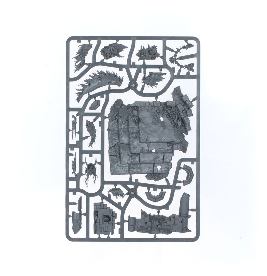 This multipart plastic kit builds Ushoran, the Mortarch of Delusion, the vampiric fountainhead of the Flesh-eater Courts. He's a towering figure, even when hunched over as if to greet a courtier – or personally destroy a smaller foe. Ushoran is clad in the finest royal regalia his ghoul servants can scavenge, from corroded jewellery and ragged robes to a fur cloak of nightshrieker pelts, and a crown of bone extends directly from his skull – a gift from his old master, Nagash.