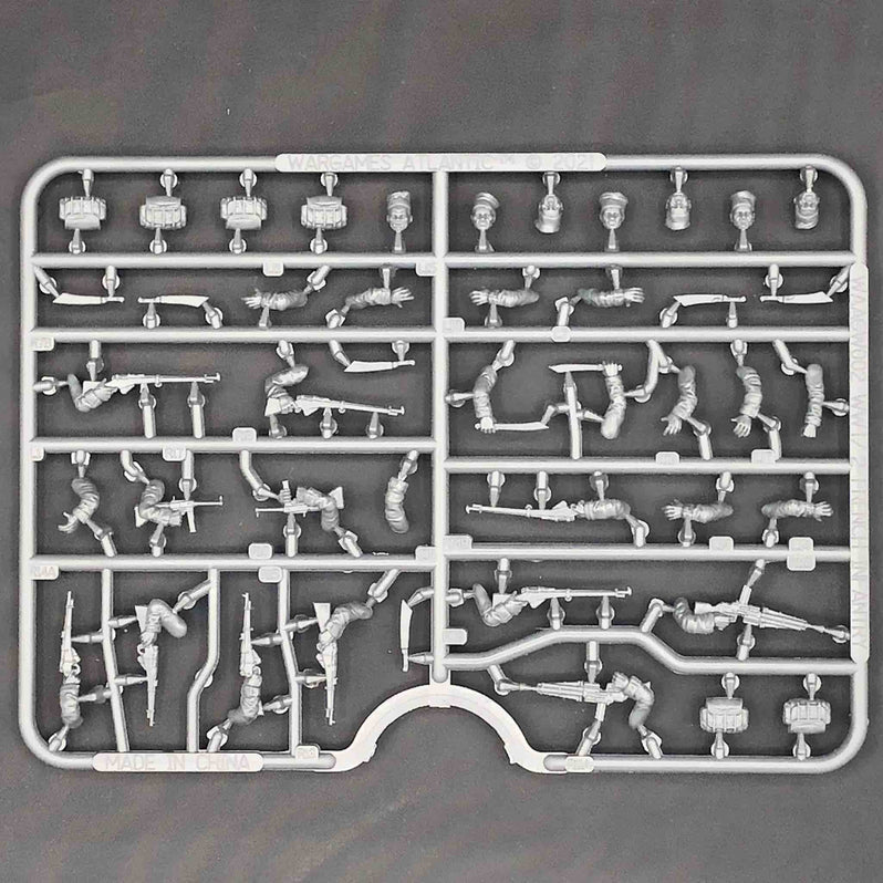 This hard plastic set allows you to build up to 35 French infantry equipped for either World War One or World War Two (with enough of each type of rifle and heads for all figures in the box).