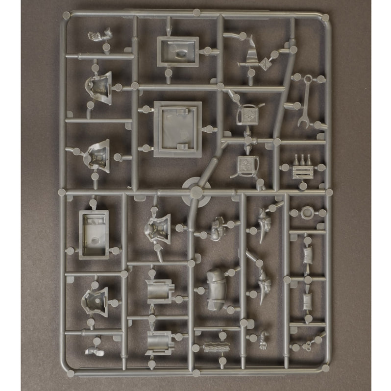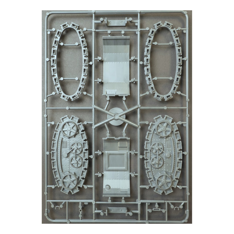 This hard plastic box set includes two frames with all the parts to build one Chyweethl tractor and crew.