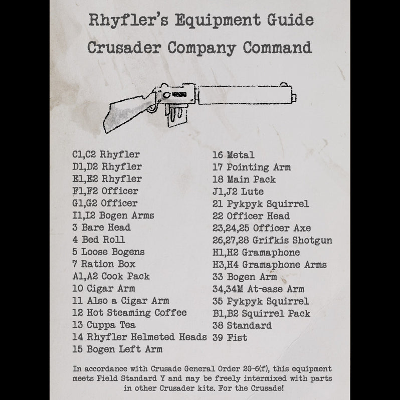 A Crusader company is only as effective as its leadership, and the Company Command Team ensures discipline, coordination, and unwavering resolve in battle. Led by a Caerten, these officers rely on skilled Standard Bearers to rally troops, Musicians to signal orders across the battlefield, and Messenger Squirrel Handlers to deliver critical commands.