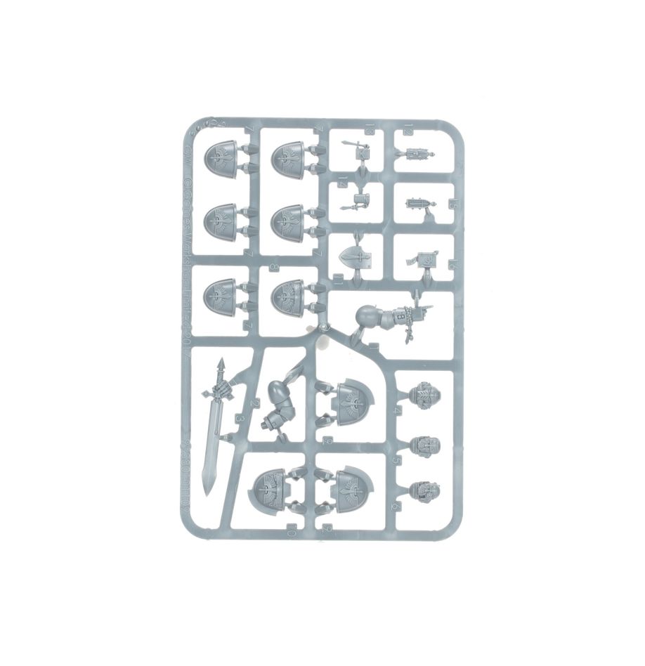 - 2x Dark Angels Primaris Upgrade frames, featuring a variety of shoulder pads and other accessories for your Intercessors