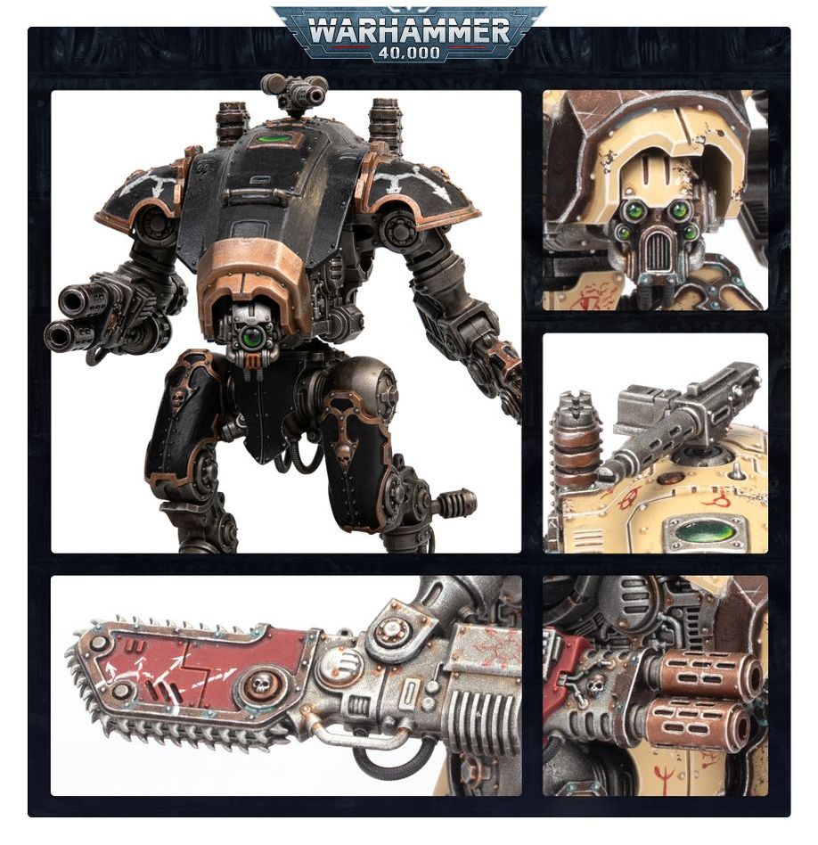 – Armiger Warglaive, armed with thermal spear, reaper chain-cleaver, and either a Questoris heavy stubber or meltagun