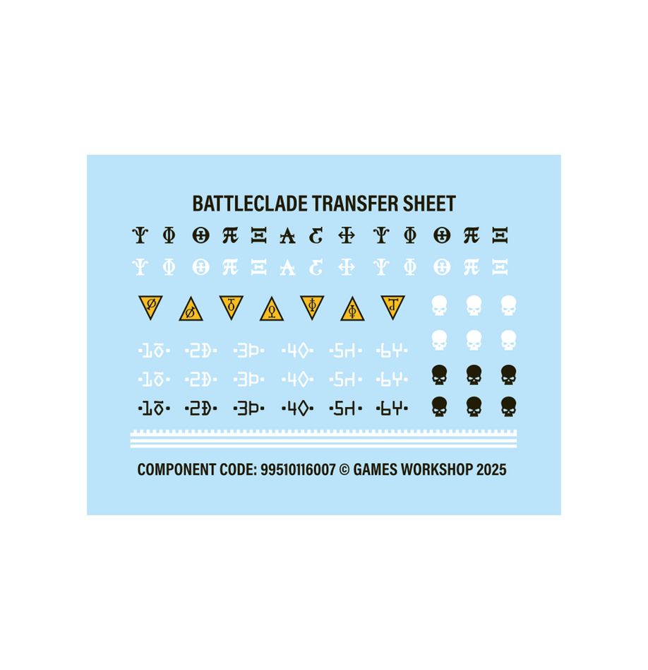 This kit comprises 108 plastic components, 1x Citadel 32mm Round Slotta Base, 3x Citadel 32mm Round Bases. 6x Citadel 25mm Round Bases, and 1x Battleclade Transfer Sheet containing 64 high-quality waterslide transfers to decorate your miniatures.