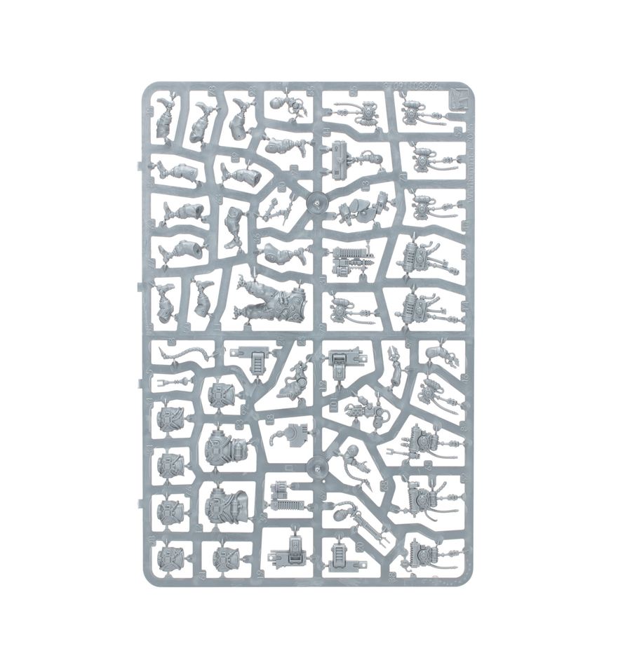 This multipart plastic kit builds 10 Battleclade miniatures which can be used as efficient and specialised operatives in games of Kill Team, or fielded in an Adeptus Mechanicus army in games of Warhammer 40,000. The kit includes interchangeable weapon arms and heads to customise your kill team, plus components to build specialists like a thrall-reprogramming Servitor Underseer, crude Technomedic Servitor, data-relaying Auto-Proxy Servitor, and more.