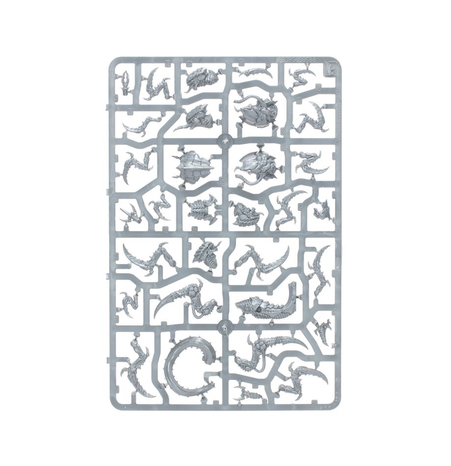 In the Ravener bioform, the Tyranid Hive Mind has created a serpentine and predatory terror capable of burrowing into the heart of an enemy position and ripping it to shreds in a flurry of razor-sharp talons and fangs. With vicious hyper-adaptations and horrific speed, there is almost nowhere safe from a Ravener’s reach.