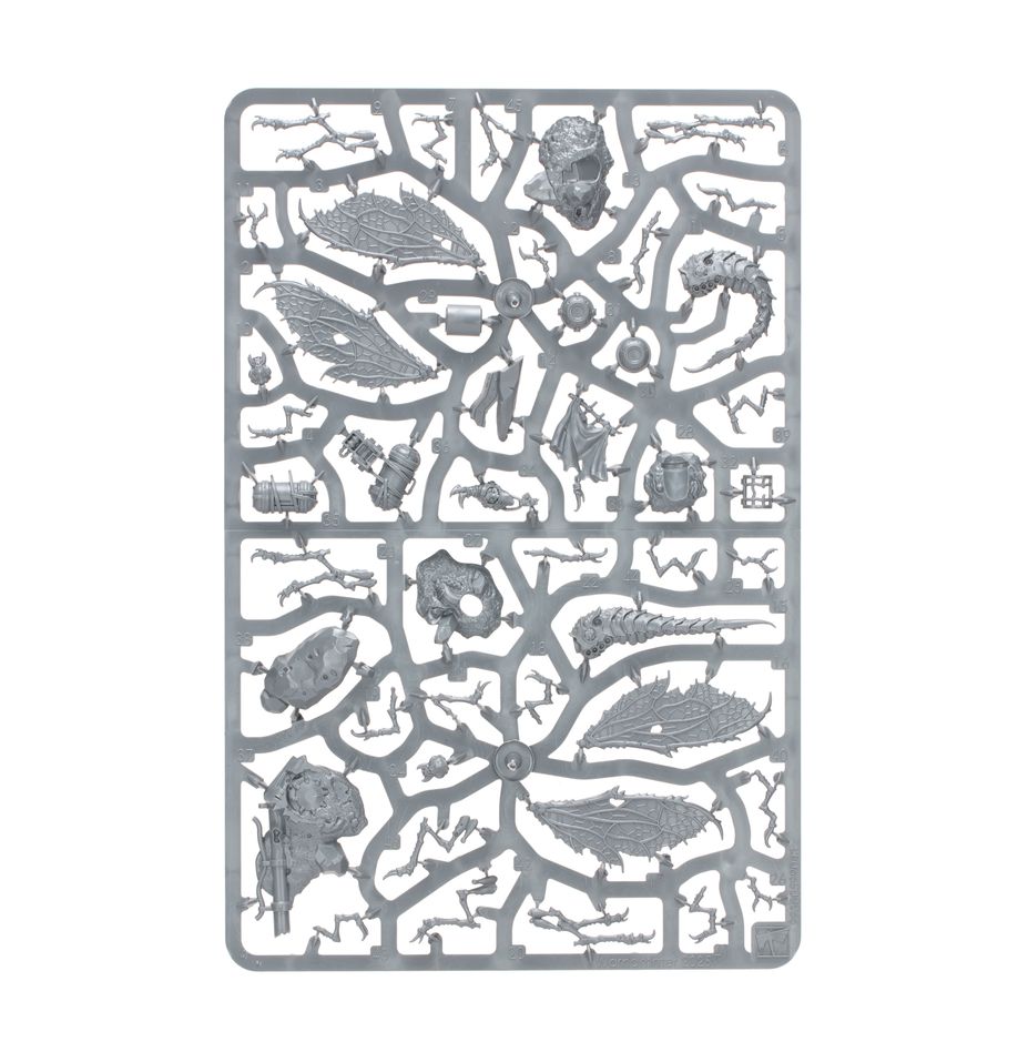 The kit comprises 46 plastic components, 2x Citadel 60mm by 35mm Oval Bases, 1x Citadel 25mm Round Base, and 3x 45mm Groove Flying Stems. These miniatures require assembly and are supplied unpainted – we recommend using Citadel Plastic Glue and Citadel Colour paints.