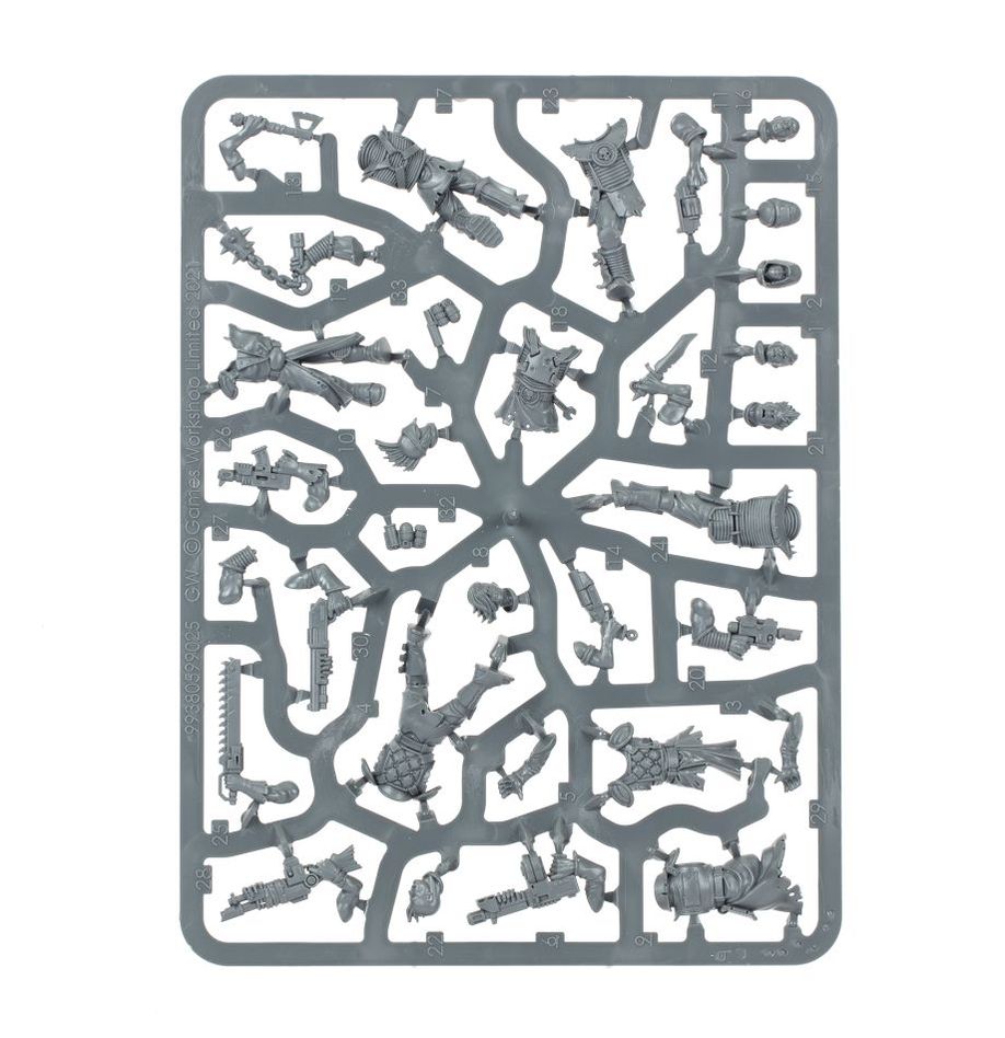 The kit is comprised of 32 plastic components, with which you can assemble 4 Hive Scum, and is supplied with 4 Citadel 25mm Necromunda round bases. These miniatures are supplied unpainted and require assembly – we recommend using Citadel Plastic Glue and Citadel paints.