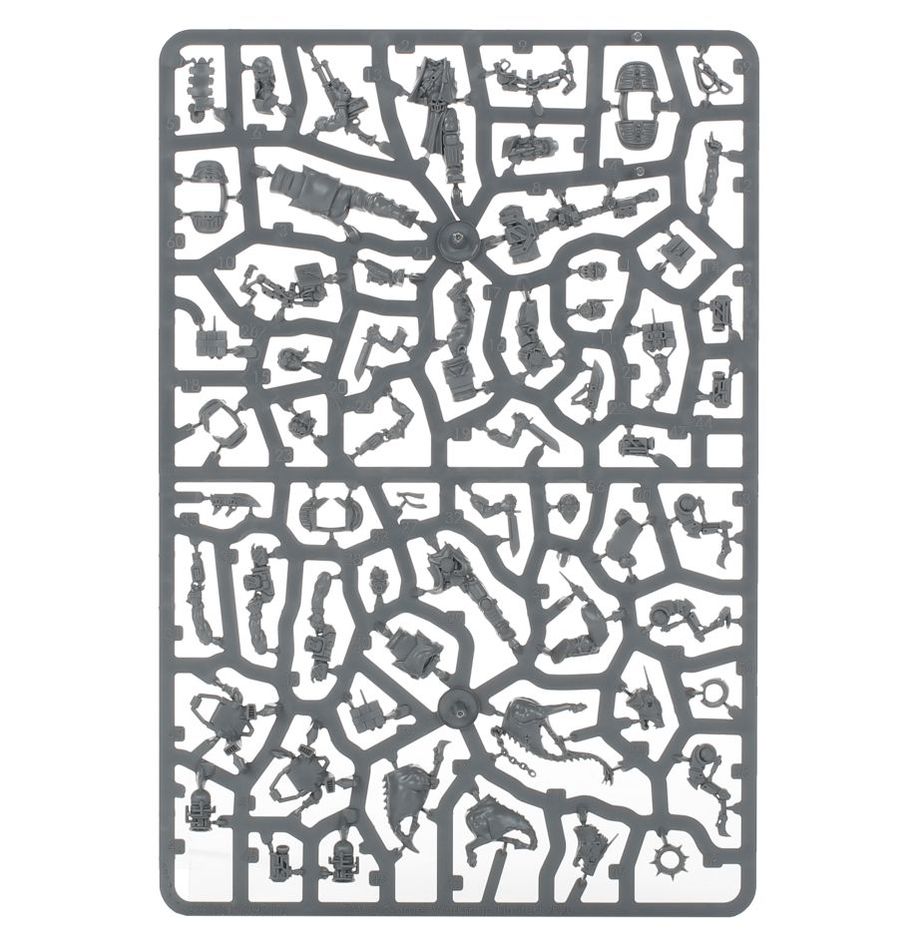 This 120-part plastic kit makes two Arms Masters, two Cyber-mastiffs, and four Wreckers. It comes supplied with four 25mm round Necromunda bases, four 32mm round Necromunda bases, and a 45mm groove stem set.