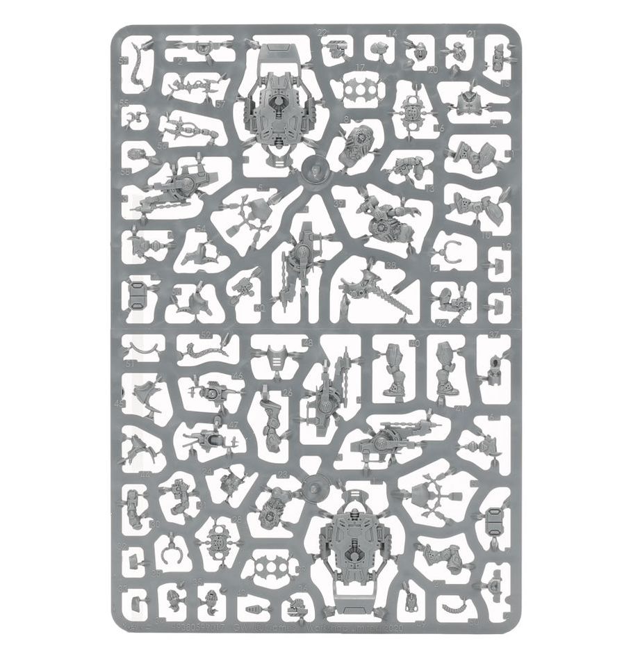 This 138-part kit makes two Archeoteks and four Neoteks. It comes supplied with four 32mm Necromunda Bases, two 25mm Necromunda Bases, and six 45mm Groove Stems.