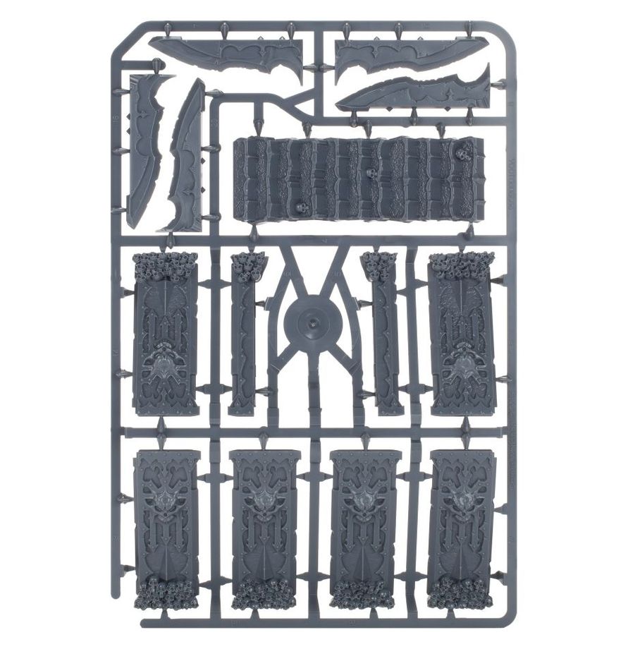 This set builds one Skull Altar. Once complete, you'll have enough room on top to mount a Khorne Hero of your choice. Covered in baroque and grisly detail, it’s a great centrepiece to your Khorne collection and incredibly useful in game.
